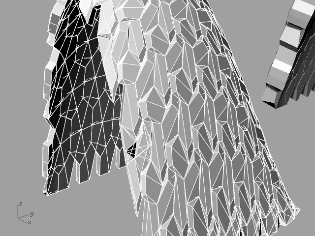 As you can see, the offset is causing the tiles to separate from one another. This problem was fixed later in the process. The end result sort of surprised me with how organic it looks. I’ve been comparing it to the Wild Things from Maurice Sendak’s book. No doubt the weird eye hole in the back is contributing to that vibe.