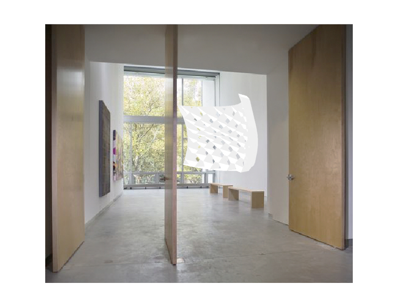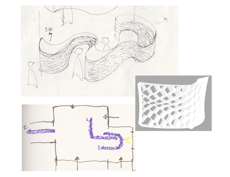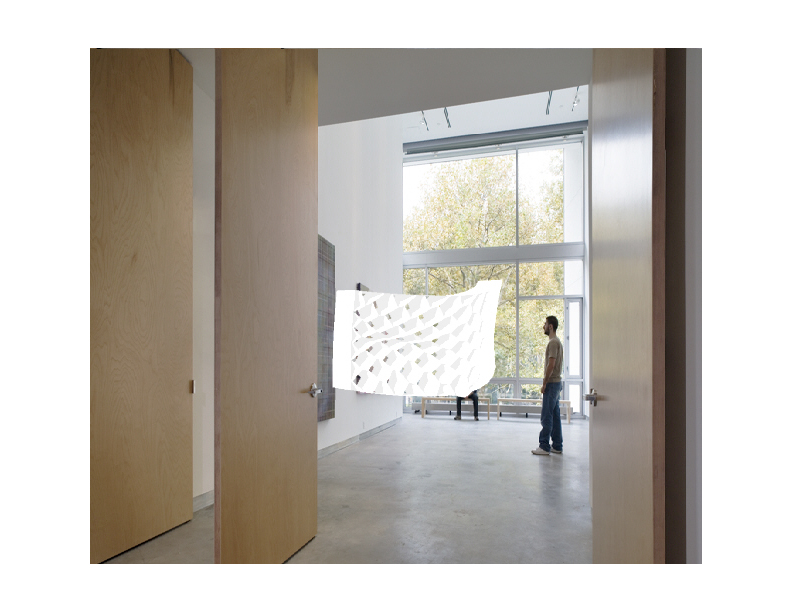 The proposed hanging structure directs the view of passersby. With openings and tunnels that change shapes and sizes, it can also generate a multitude of visual transparency.