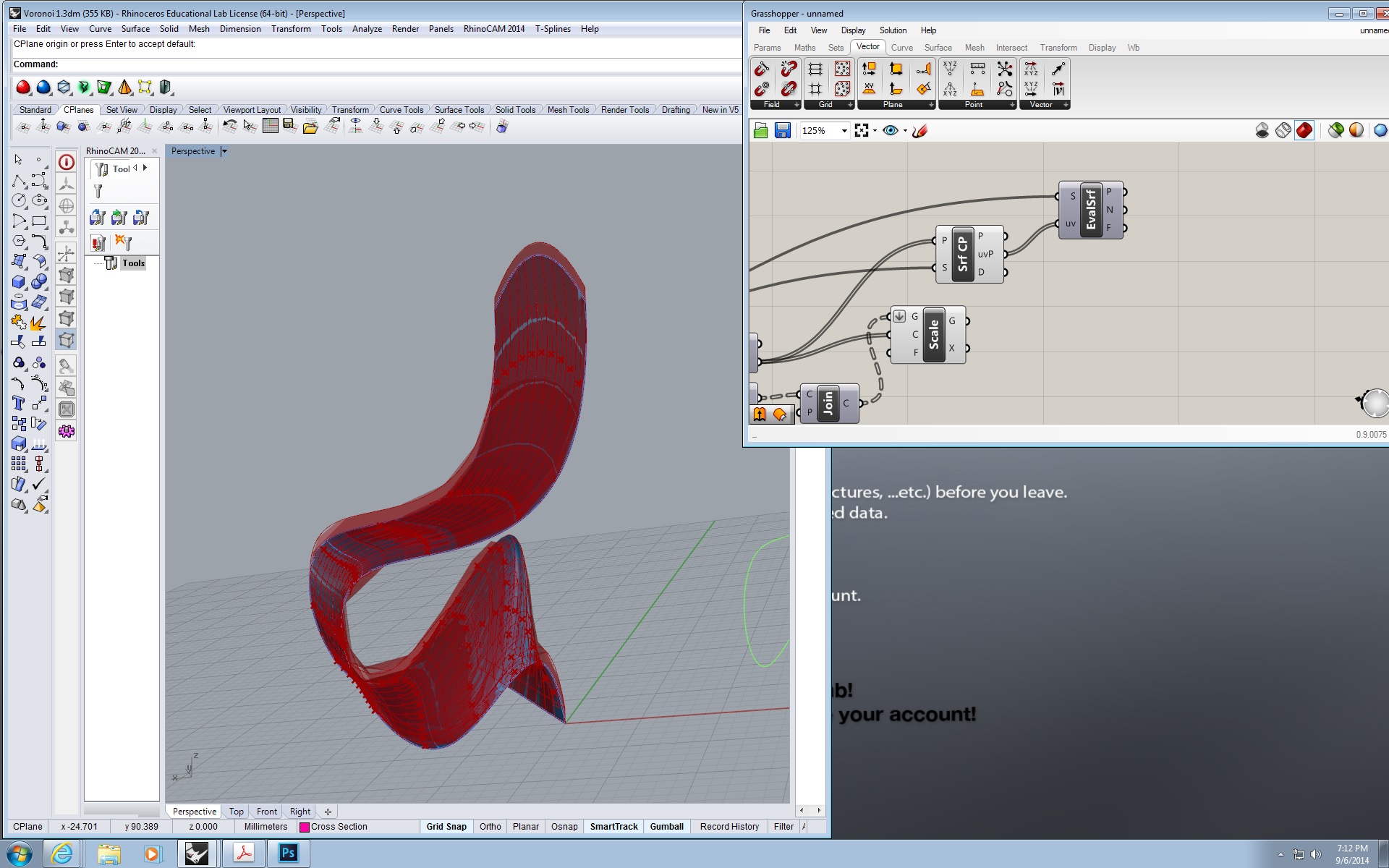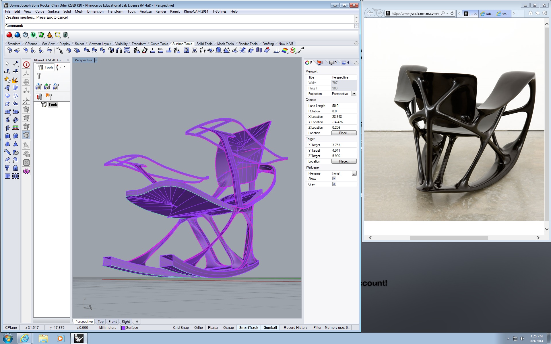 The first chair I was working with is the voronoi chair. I made the initial curve in Rhino and lofted it over. i then used the gumball tool to change the curves to match the chair. I tried applying the voronoi pattern onto the chair, but it would be applied onto a flat plane and would not go with the organic shape of the chair. I kept playing with different algorithms on Grasshopper but I essentially ended up with the spawns of spiderman (failed).