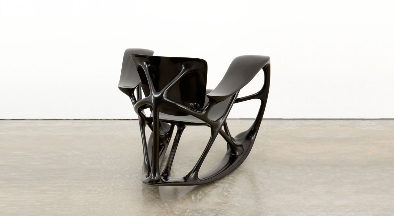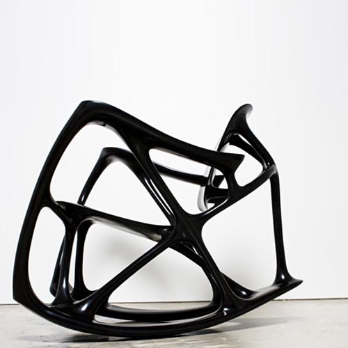 The Bone Rocker Chair was designed by Joris Laarman by merging 3-D modeling and life sciences. Laarman used algorithms to model the proportions of naturally occurring growth such as in human bones and trees. This algorithm is used by the German car industry and helped Laarman in reducing and strengthening his designs by optimizing the allocation of material, weight and stability. It also helped in minimizing material input. “In his own words, Laarman sculpts ‘using mother nature’s underlying codes.'”