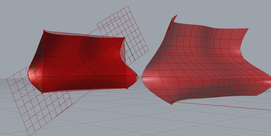 When I connect the single surface to the surface driver server I get above. When I connect the Isotrim to the single surface driver I get the below craziness. This problem only started once I started with the offset curves and fillet. Trying to figure out what went wrong…. AHH.