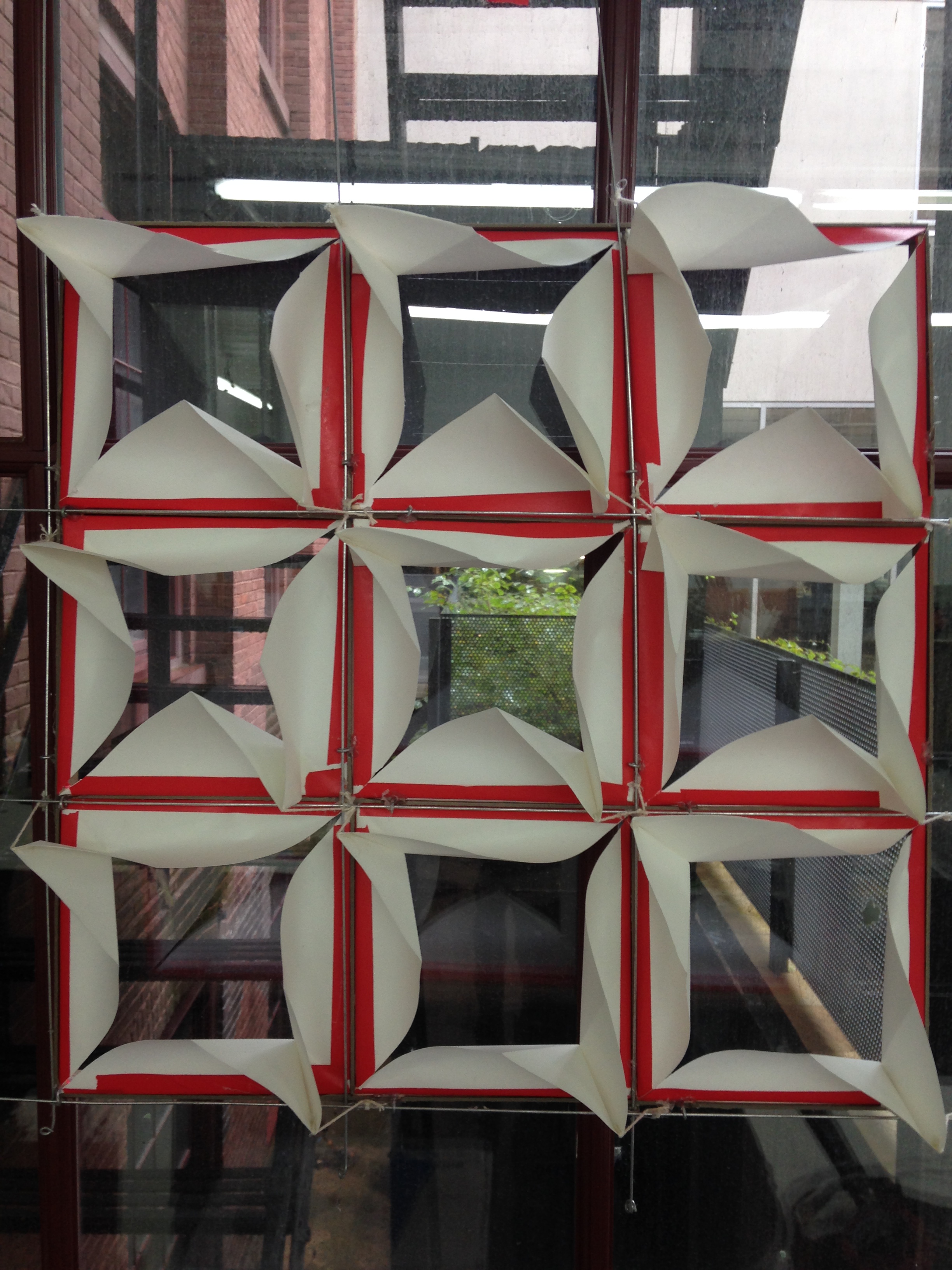 I’m pretty happy with how it turned out. It would be easier to assemble if I had tabs but I kind of like the way it looks without the tabs. As far as attached it to the window, I would want to attach it to brackets. It’s against the window above. Of course this is at night, so I’ll have to see how it does in the daytime…when it is not cloudy and raining.