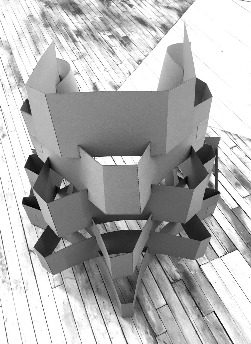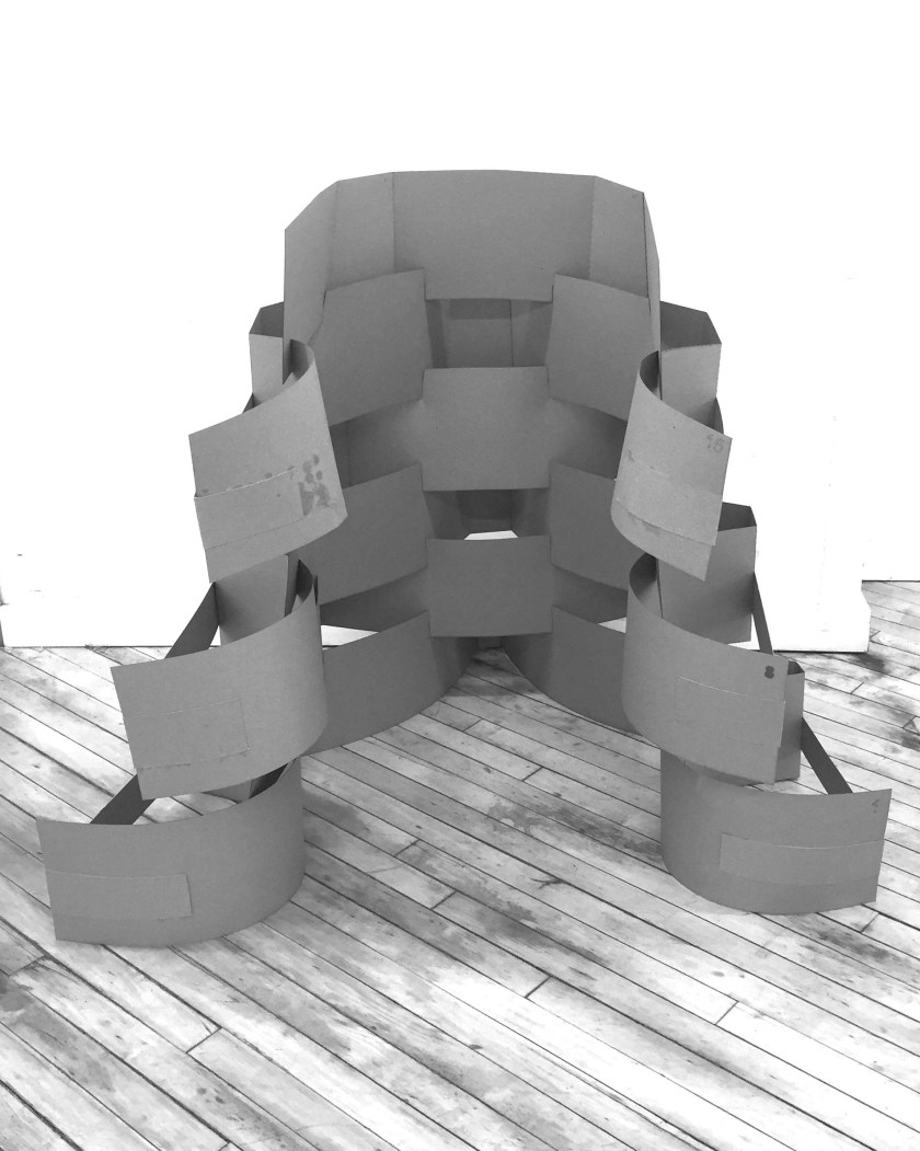 The wall is created by two set of components. One component creating a fold horizontally and the other creating a fold vertically. The variation consists on the extension of the components and the extension of the joint connector. The other variation consist on the number of components on the rows and columns of the wall. With different variation the wall could create the right about of privacy for the child that peeks through it.