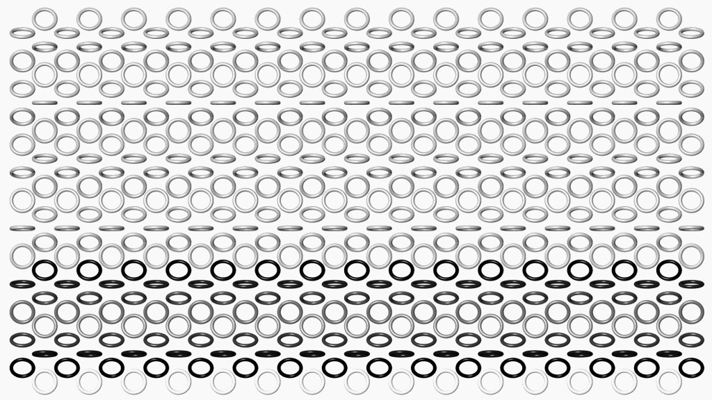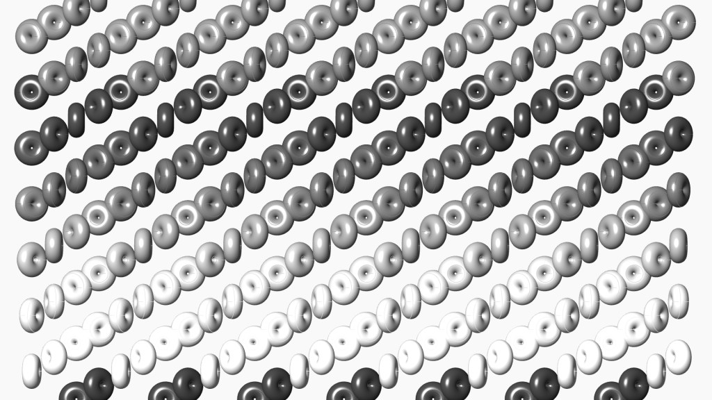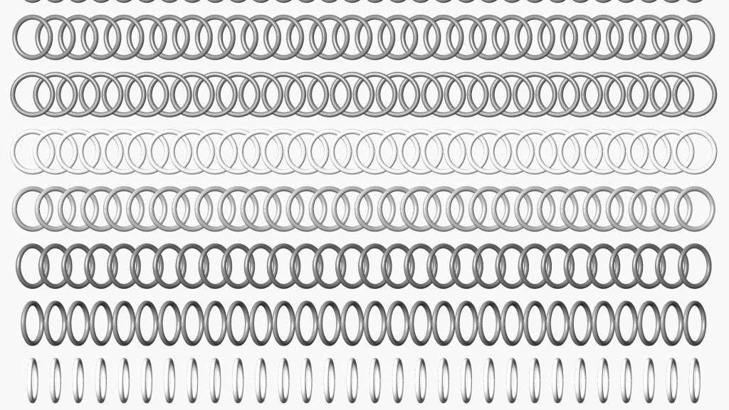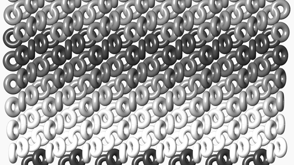 For my 2D patterning project, I took influence from the in class demos of using a grid of points to map geometry as well as the primer 1.4 example on creating different “tile design” patterns using lists. I then began to play around with the various iterations that could be formed from adjusting elements like the cull patterns toggles, radius of the circle/pipe, gradient, and vector types.