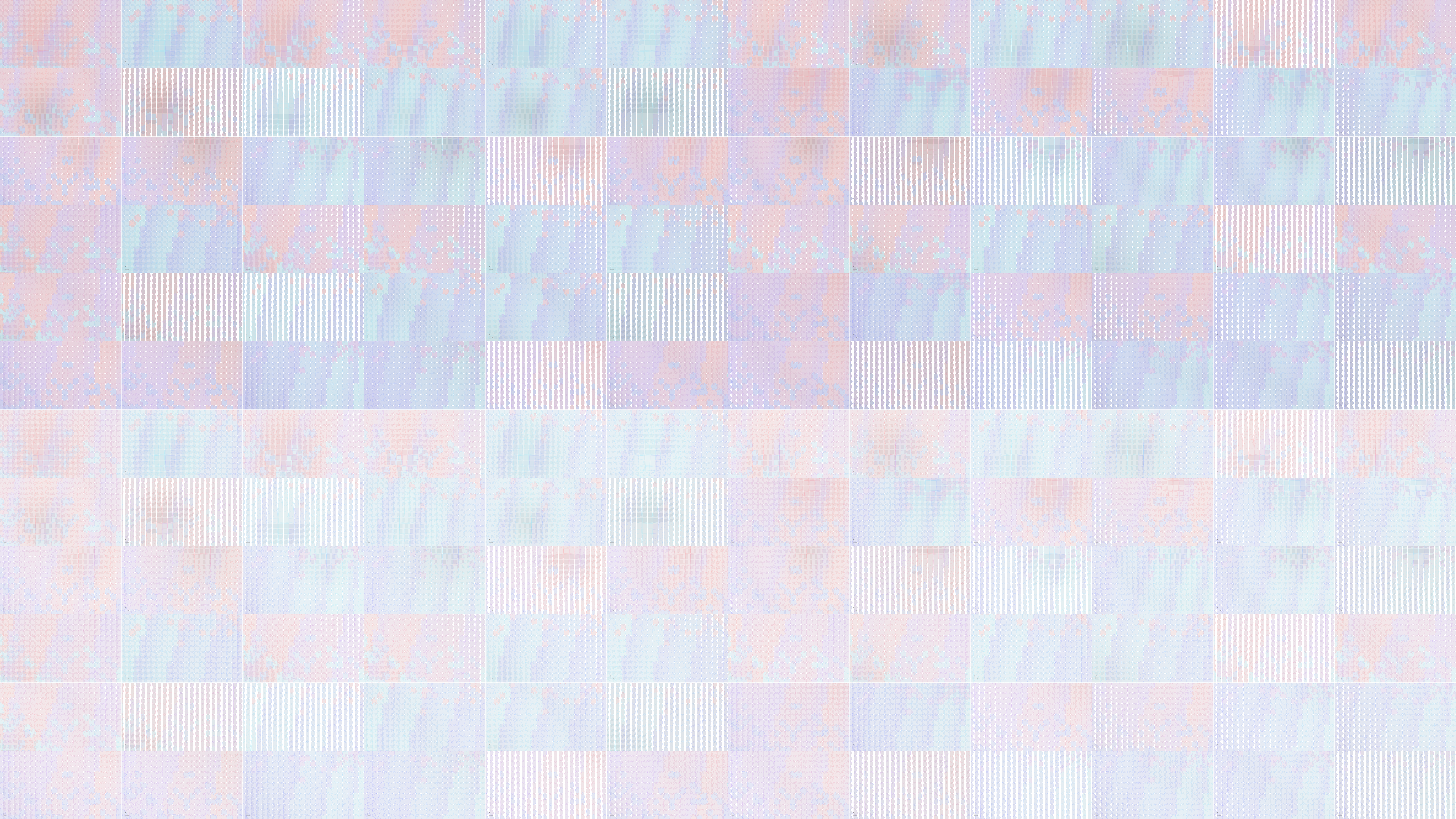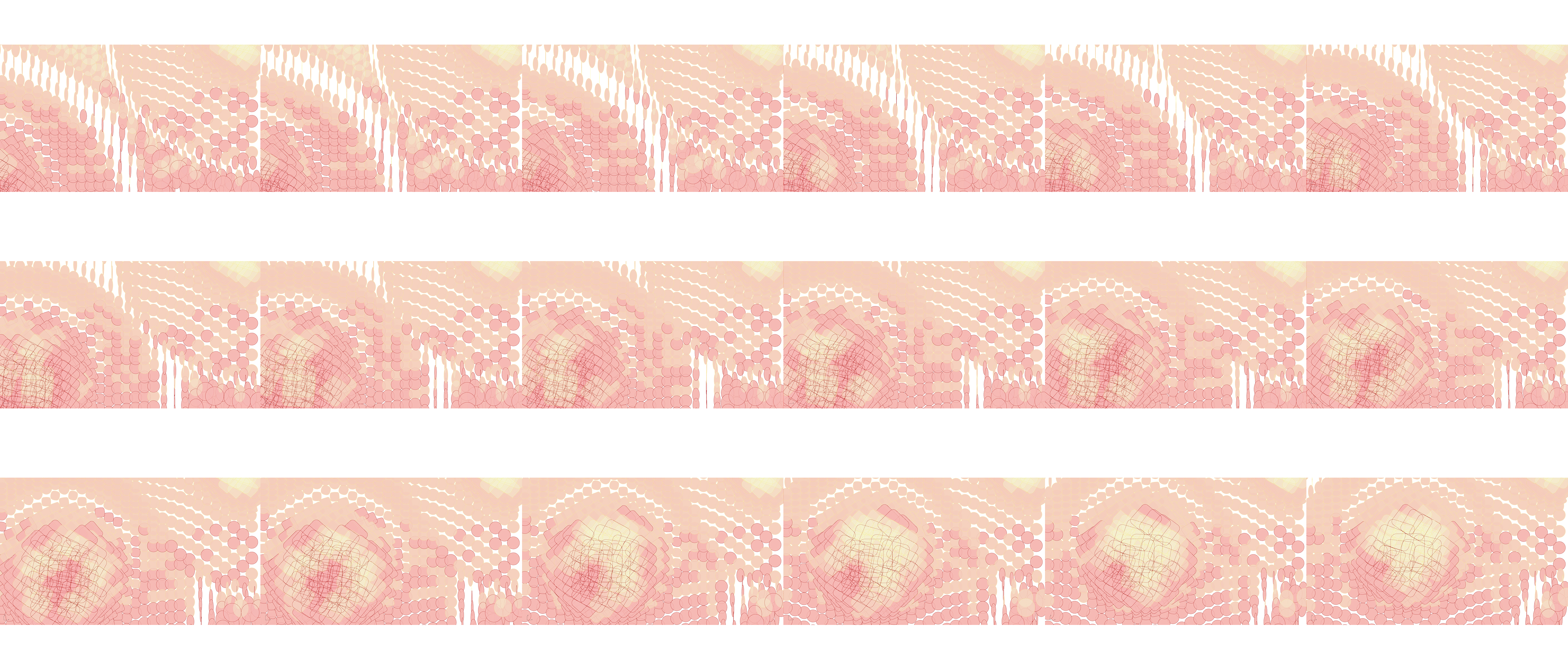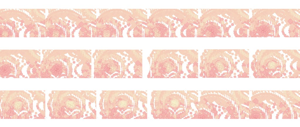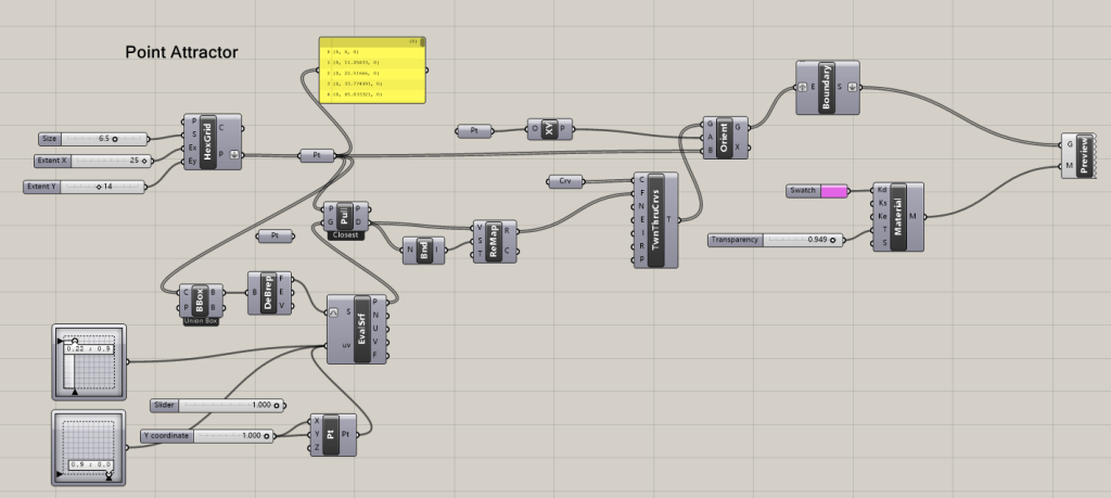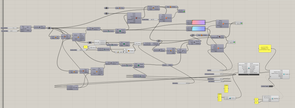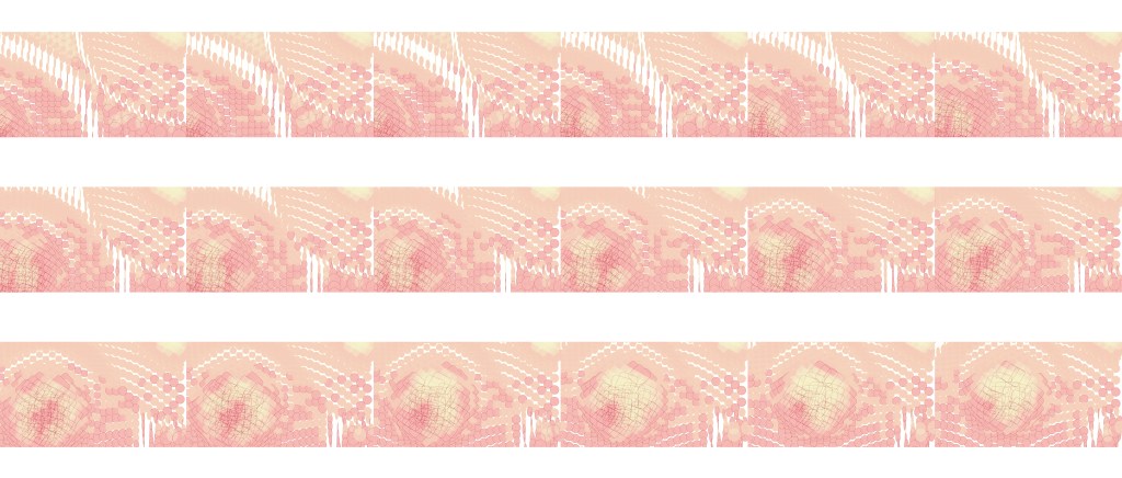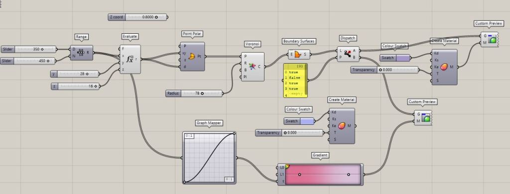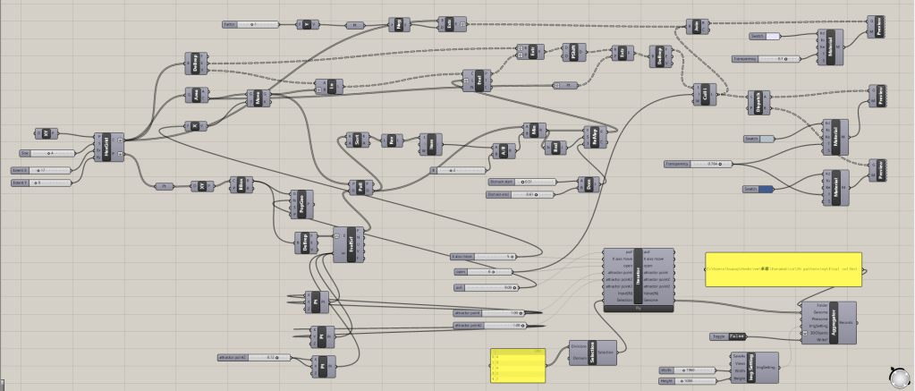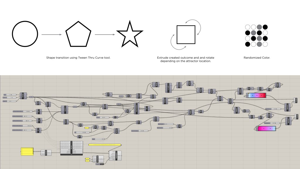 Grasshopper Connection144 2D Pattern ImagesCombination of All Pattern ImagesPattern Movement with Moving of Attract PointRandom Color Gradient from One Color Gradient Scheme to Another