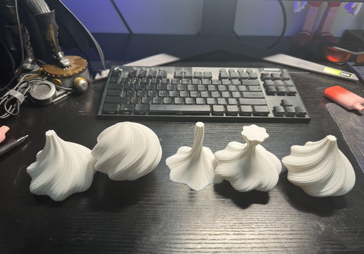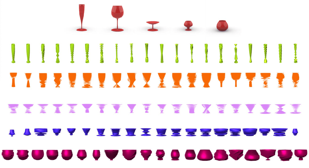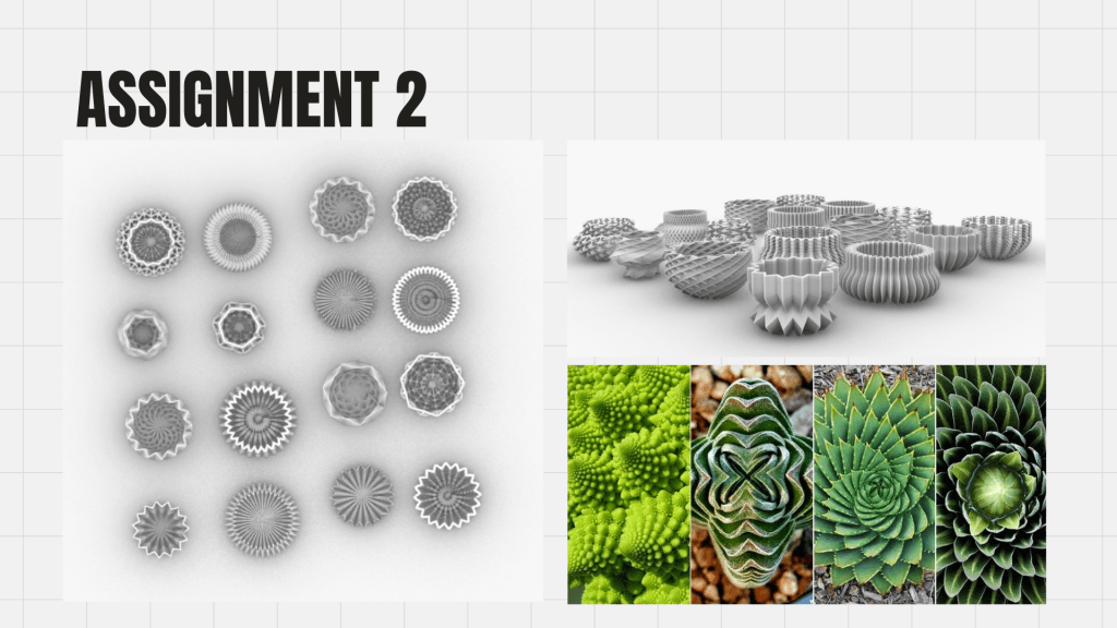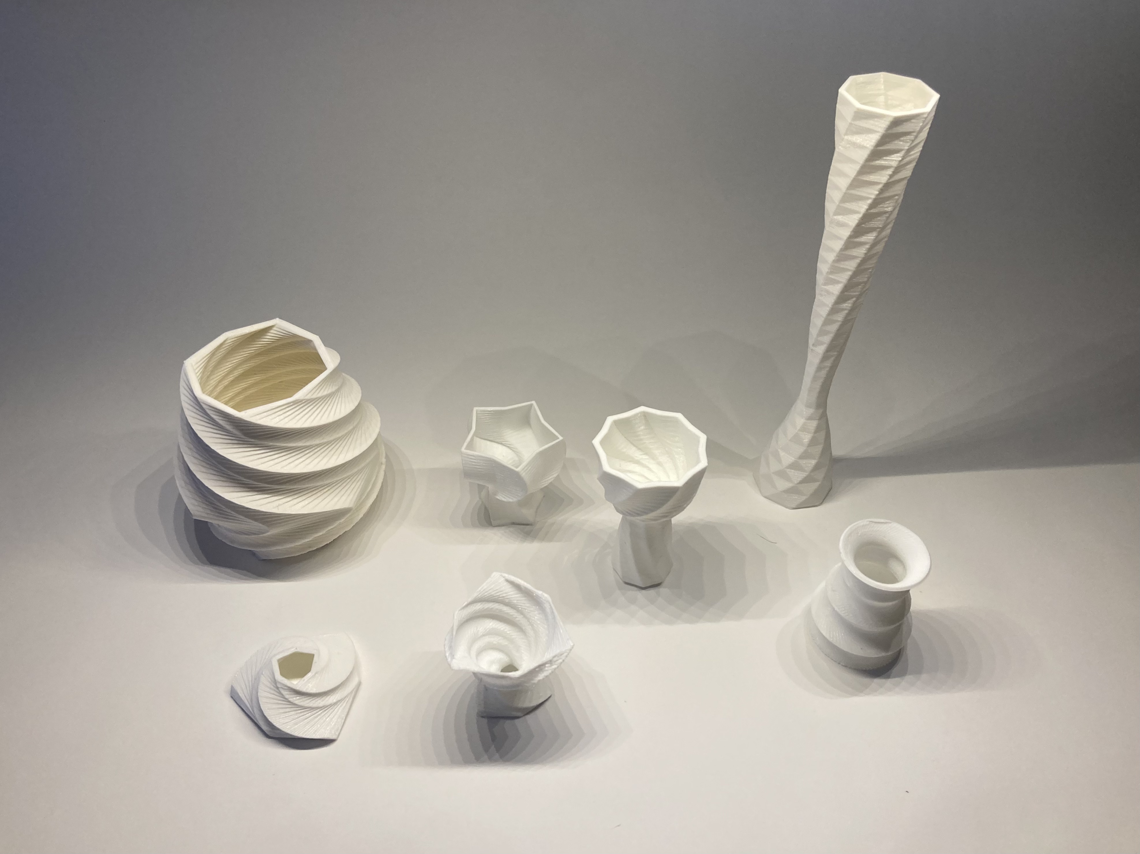 Hi everyone! For project 2 I was inspired by the different existing taxonomy of cocktail and wine glasses, so I started off with a tween through 5 different glass types. Upon further research though, I learned that you cannot eat or drink out of things that have been 3D printed because there are microscopic holes where bacteria can collect that can be harmful. So, I decided to keep my original idea, but make the cups for plants. Hence “Tipsy Planters”. The different cups can serve as a way to organize your plants by category the same ways drinks are. Additionally I decided to no do a tween though 5 different surfaces. Instead I made 1 long code, where I could use a bezier graph to control the the size and location for the stems and cup parts of the glasses.