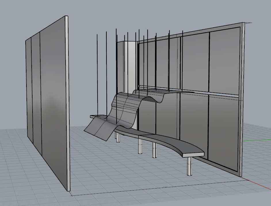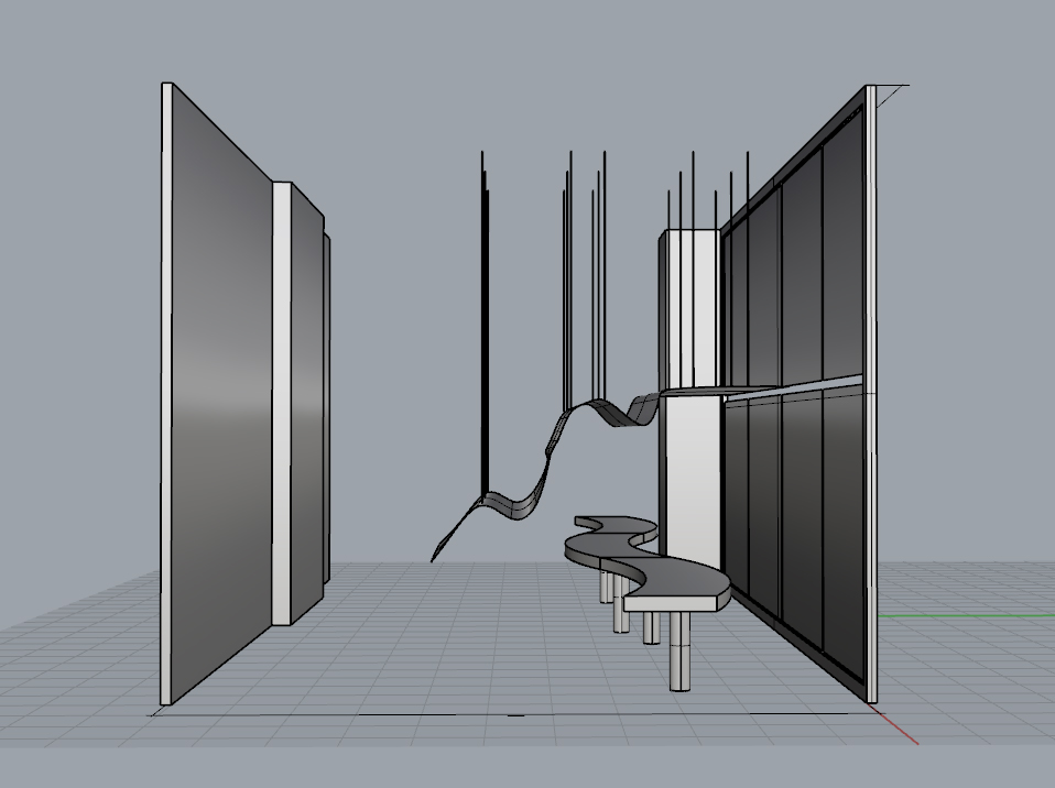 The form finding parametric project presented is the creation of different ideas collected in our group. When we brought together our ideas we end up generating an enclosed space where in one point of the installation is upright from the floor and other points are suspended from the ceiling. The first shape created simulates a canopy allowing the spectator an underneath seating experience. The second shape created, the canopy is modified to create a more enclose area using arc shapes and creating a center hole experience for the spectator. The second shape is situated on the corner of the room and two of the arch openings are attach to the walls to enclose and create a cave experience. The third shape delivers from the second shape using the arch forms and cave experience. This shape is altered and modified to form two arch openings, one is located on the wall and the other one is the entrance of the parametric cave. We also created a hexagonal patter to apply to our form found surface. Each hexagonal shape will have different sizes and each orientation will be rotated. The goal is to create a gradation of cut-out sizes using an attractor point and randomized the rotation pattern. The union of the hexagonal patter and the shape of our installation will create a playful light and shadows enclose experience to the spectator.
