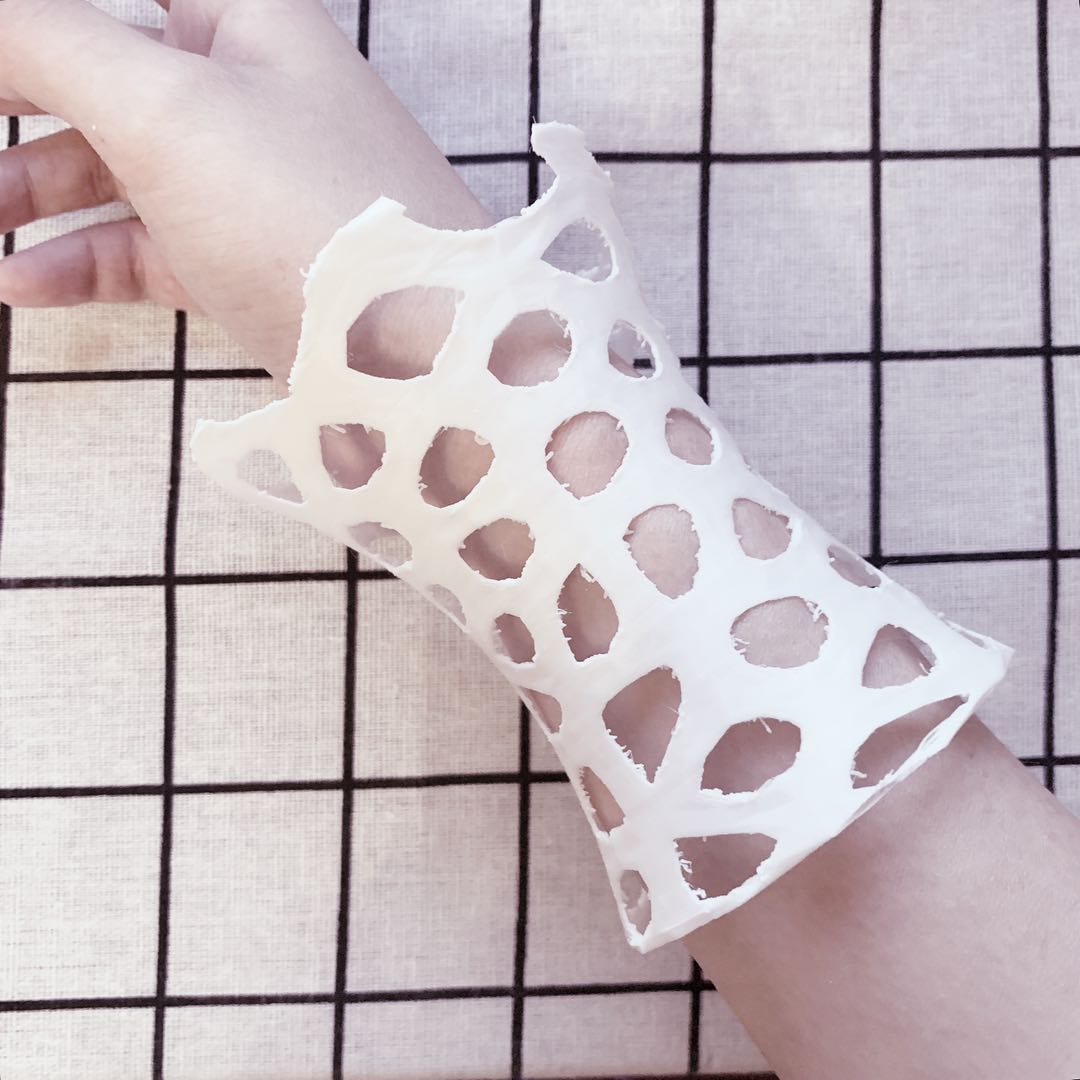 The design is inspired by the pattern of cells and their randomness. According to research, the current urban population has a need for touch, so the design of hollows can enhance the tactile experience of the product and satisfied people. In the process of grasshopper design, I first measured the size of my wrist and hand, to ensure that the finished product can be suitable for my hands, and use this data as the basis of the surface morph. The shape of the bracelet is small in the middle and small at both ends, which is a combination of Rococo and modern minimalist style. By varying the size and number of holes, different patterns and varying degrees of feel can be produced.