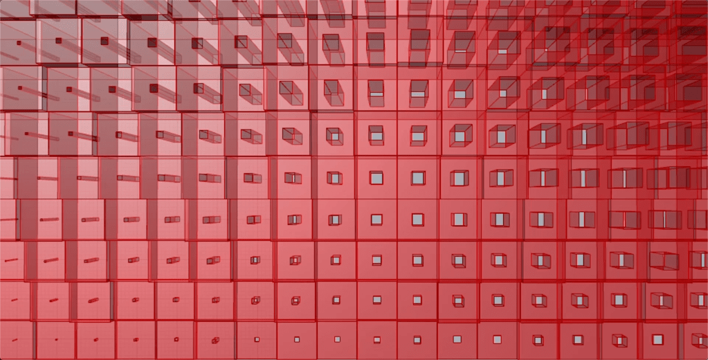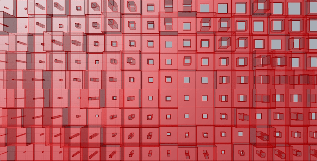 In this assignment, I try to use Grasshopper to control the deformation of the most basic cube. First, there is the hollow in the center of the cube, then the growth of height and size. Besides, I also tried to mix the disorderly control so that the whole pattern is full of dynamic rhythmic rhythm.