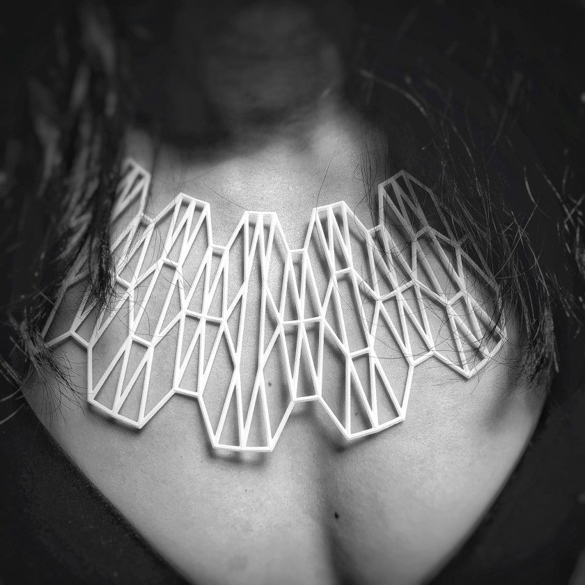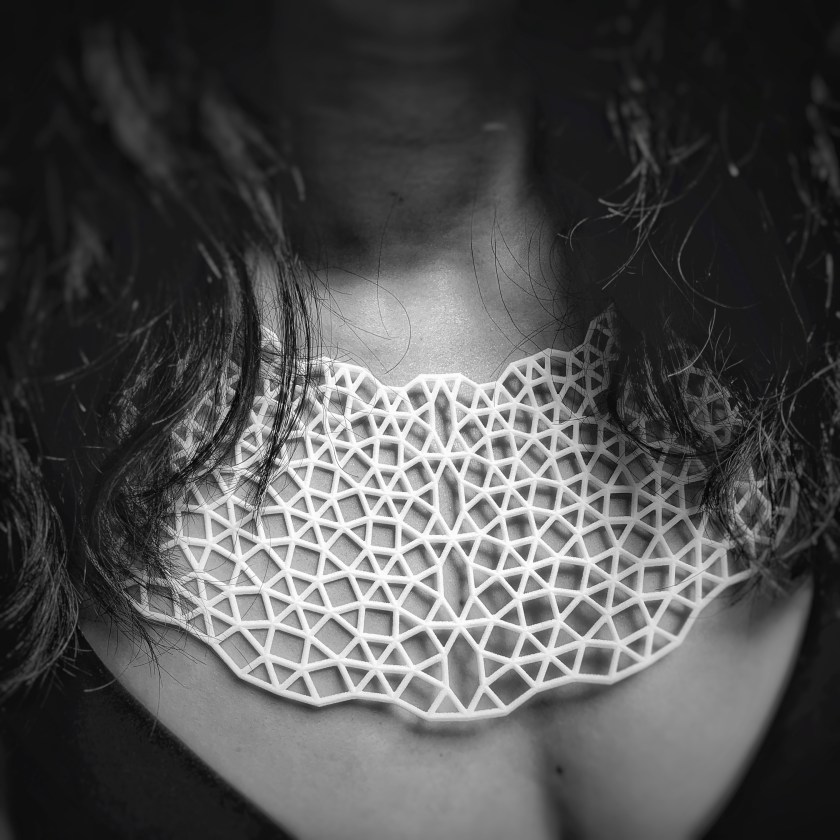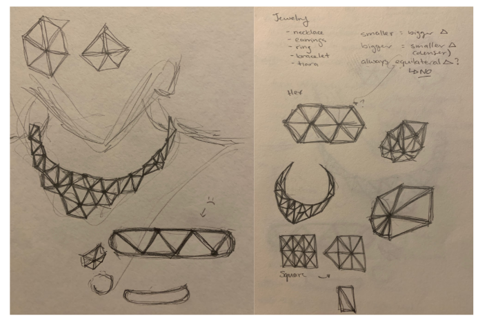 My product family is a series of necklaces. My initial idea was to work with triangles to create patterns of different density to form necklaces with varying opacity/transparency.