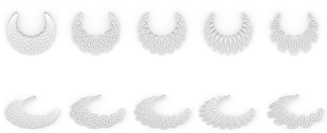 The final 5 were selected because they showed the evolution of the pattern design in transparency/opacity the best. I felt these 5 examples best exemplifies my idea and helps to strengthen the product family of necklaces as a series.