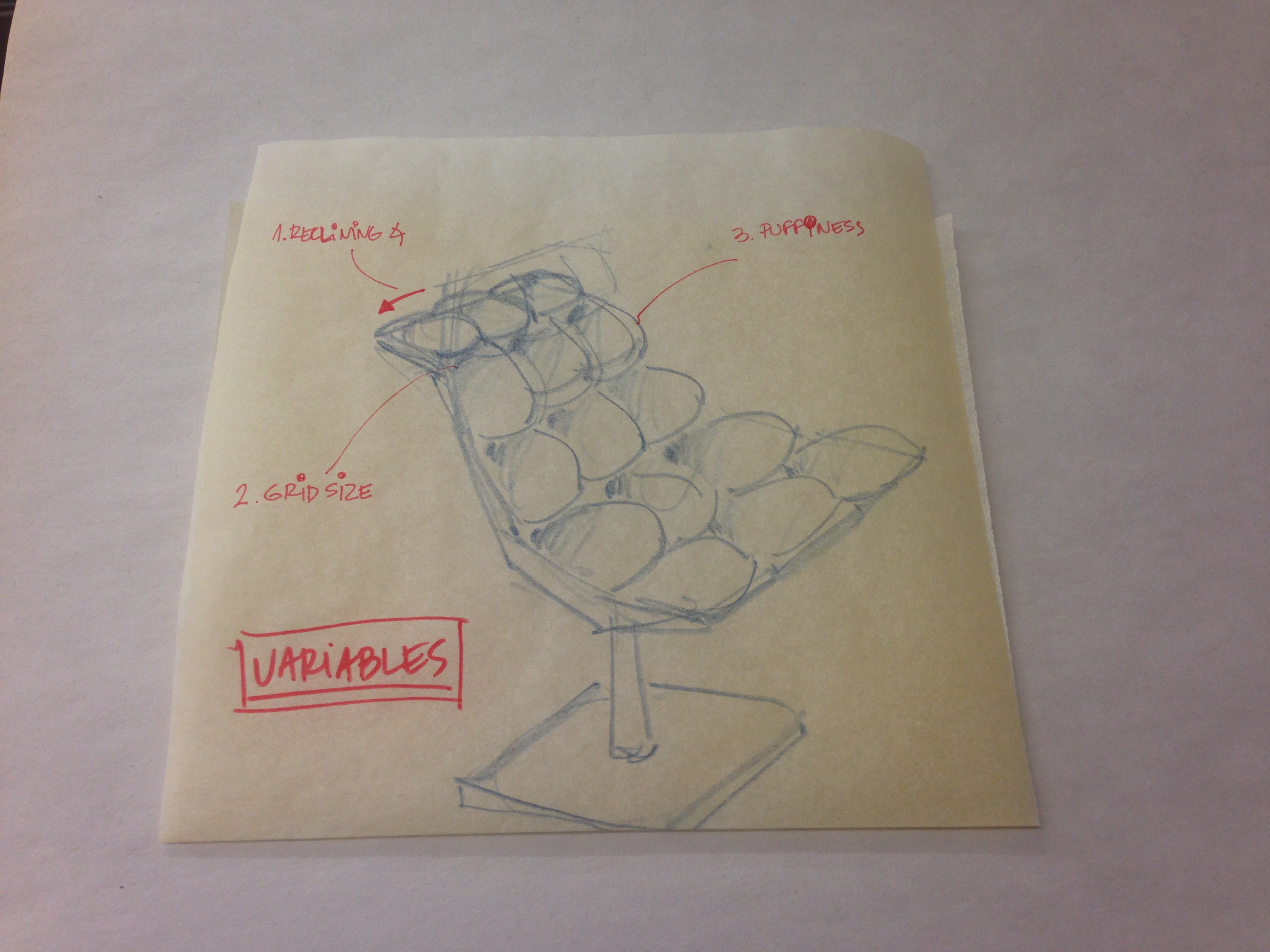 I created the curves for the chair by referencing points from Rhino. I selected the top 3 points and connected a slider to them to change the x and z coordinates.